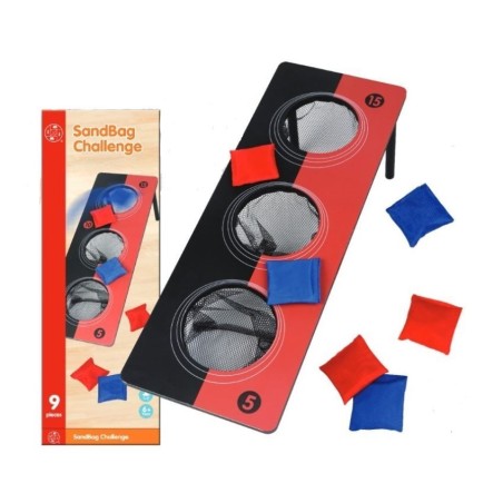 Amateurs de jeux de lancer, craquez pour le SandBage challenge! 3 sacs de couleur pour chaque joueur, 3 trous, autant de possibilités de l'emporter! Dès 6 ans.